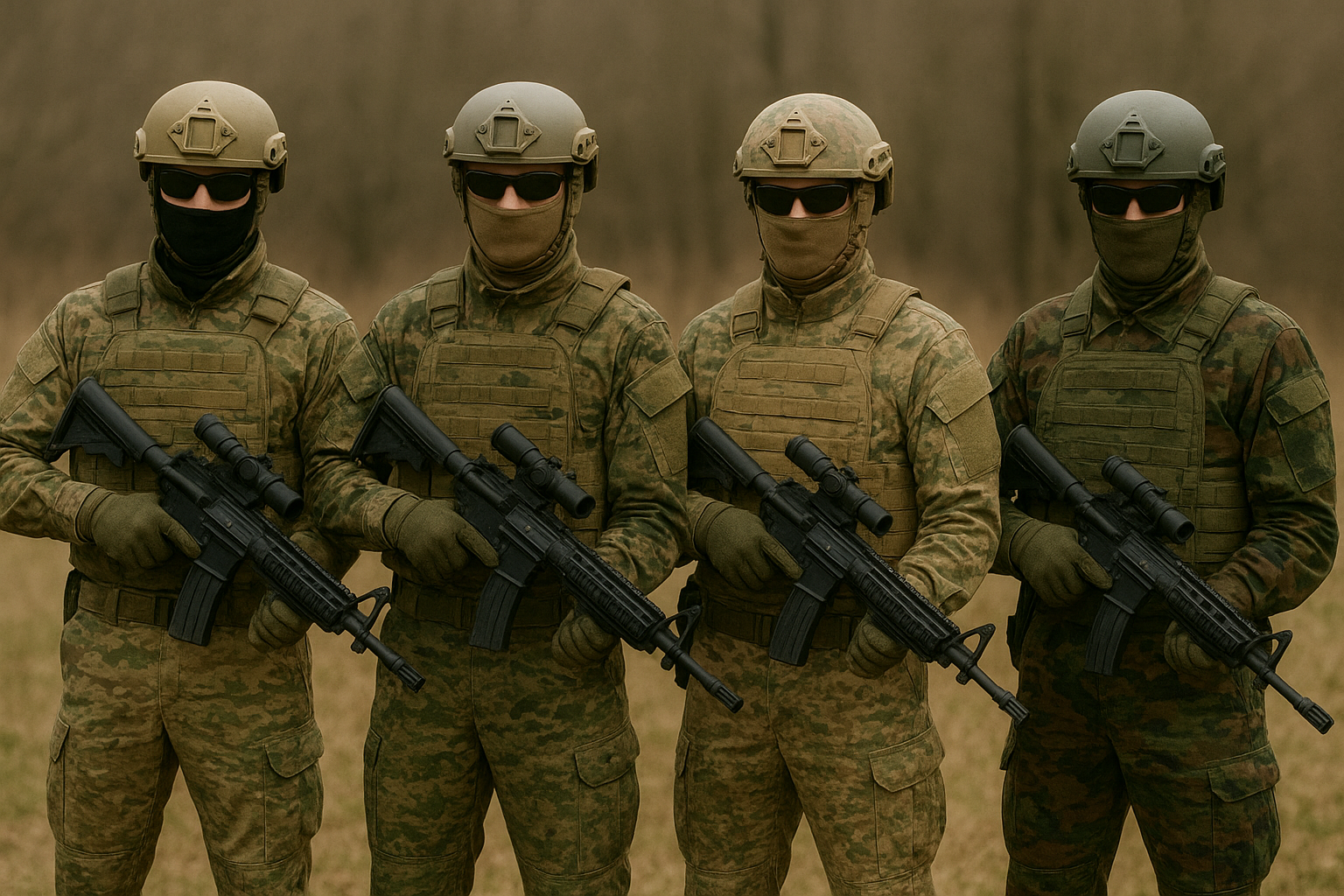 Öltözet: Egységes terepszínű ruházat, „taktikai mellény”(nem kötelező)